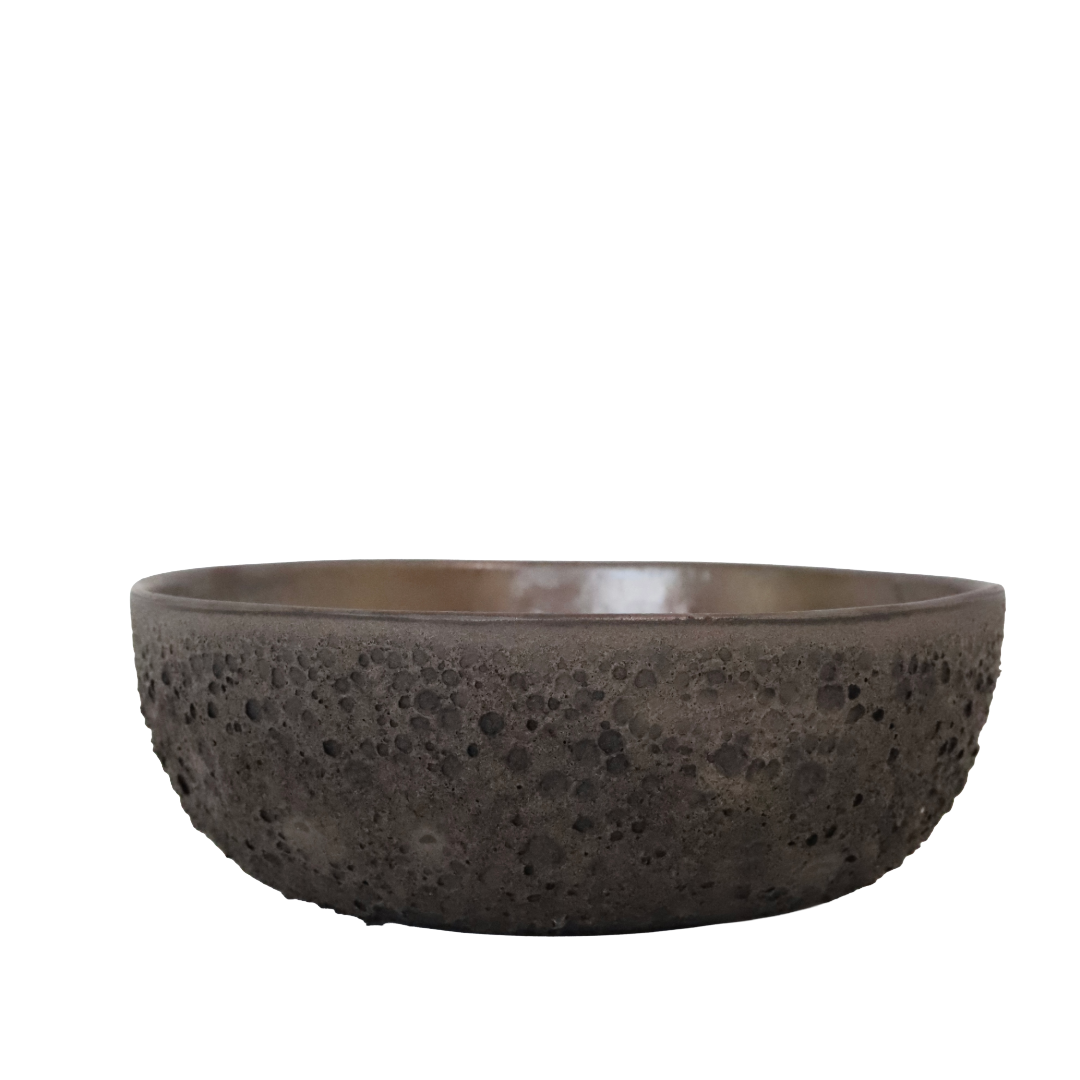 Koyu kahverengi tonları, toprağın köklere uzanan dinginliğini ve sadeliğini yansıtırken; kasenin dış yüzeyini saran köpük dokusu, doğanın ham gücünü ve organik kusursuzluğunu hatırlatır. Her bir detay el işçiliğinin eşsiz izlerini taşır, tıpkı doğada hiçbir şeyin birbirinin aynısı olmaması gibi.