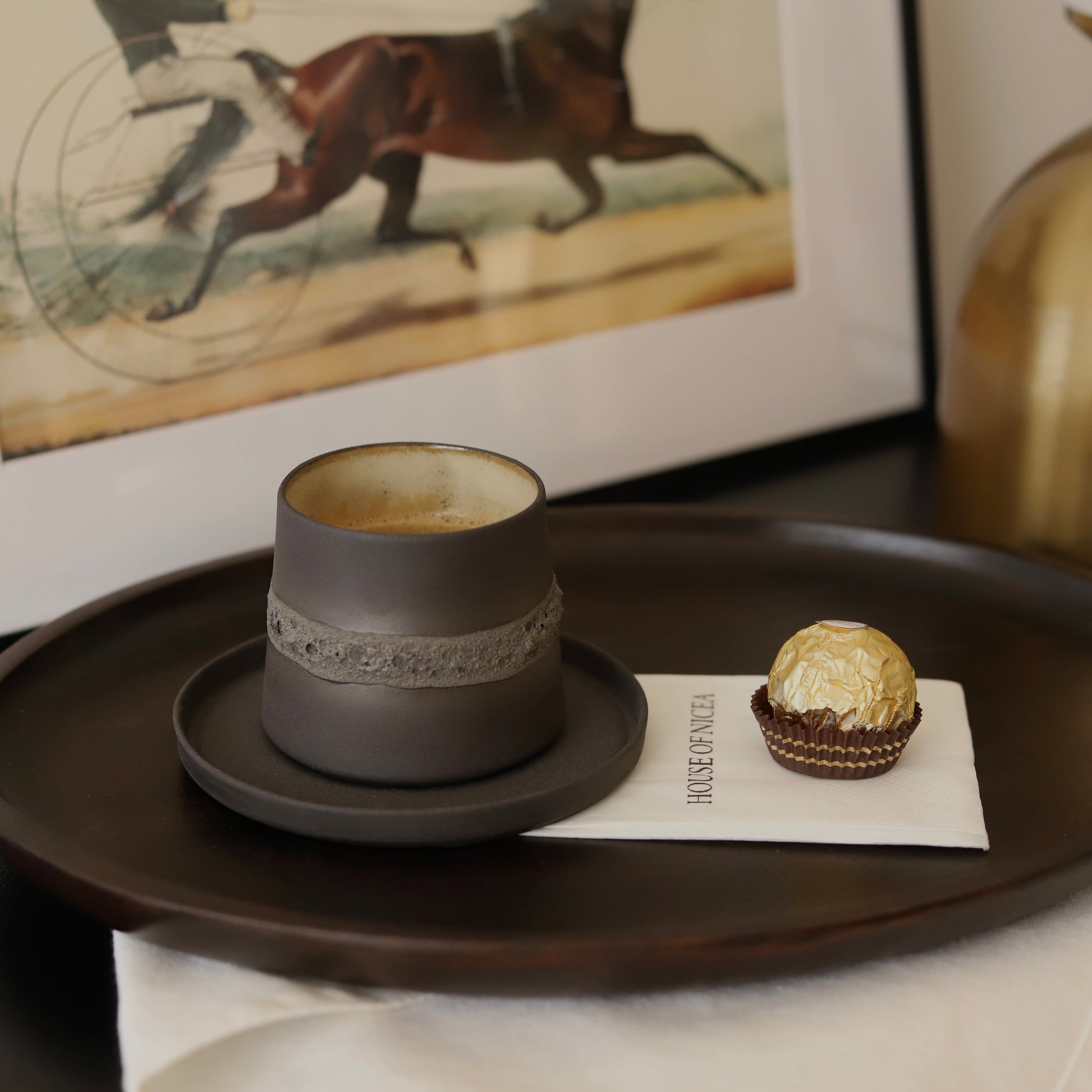 Toprak Ana’nın gücünden ilham alan Gaia Black Fincan Takımı, koyu kahve tonlarının derinliği ve minimal formuyla kahve ritüellerinizi özel bir seremoniyi andıran anlara dönüştürür. Altlığı ile birlikte tasarlanan bu parça, hem işlevselliği hem de estetiği bir arada sunar. Elde şekillendirilmiş ve özenle hazırlanmış her fincan, tamamen benzersizdir.