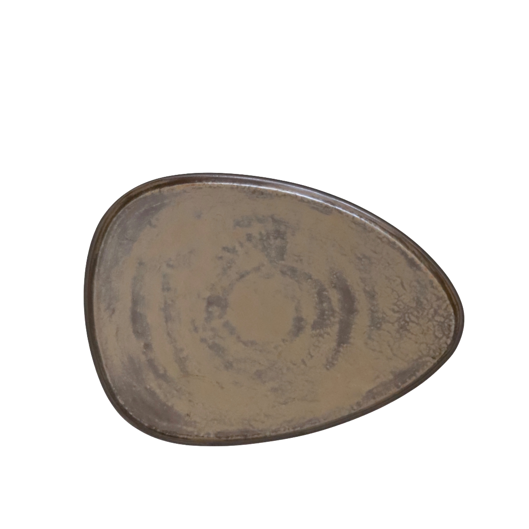 Doğadan ilham alan organik formuyla Gaia Black Üçgen Servis Tabağı, sofralara modern ve sıra dışı bir dokunuş katar. Toprak tonlarındaki zeminiyle bir pano gibi; içindeki renkleri ve dokuları tüm yoğunluğuyla yansıtır, her sunumu görsel bir şölene dönüştürür.