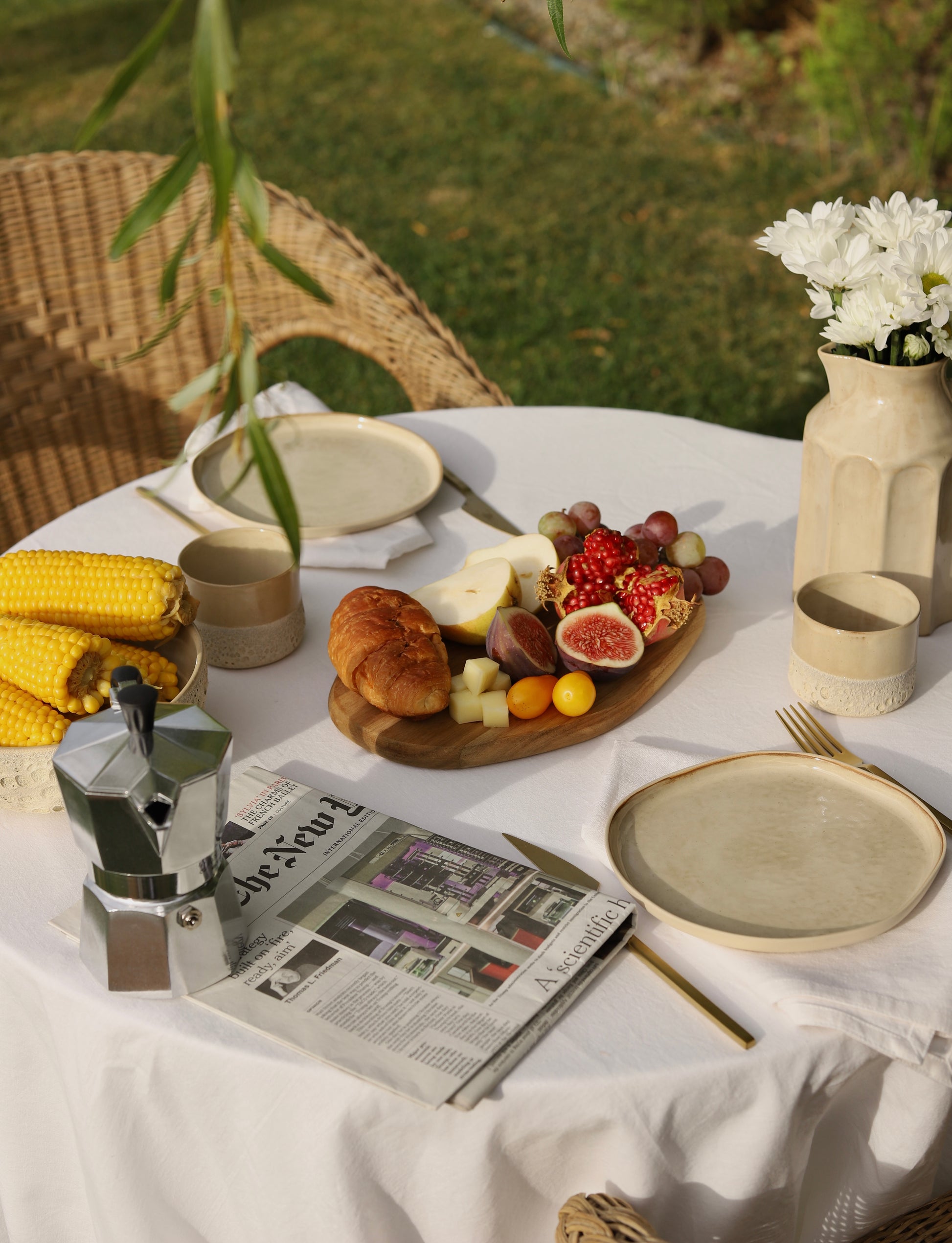 Tatlılar, kahvaltı sofraları veya başlangıç sunumları için ideal boyutuyla hem günlük sofralarda hem de özel davetlerde şık bir eşlikçidir. El yapımı doğası sayesinde her parça benzersizdir ve sofranıza karakter katar.