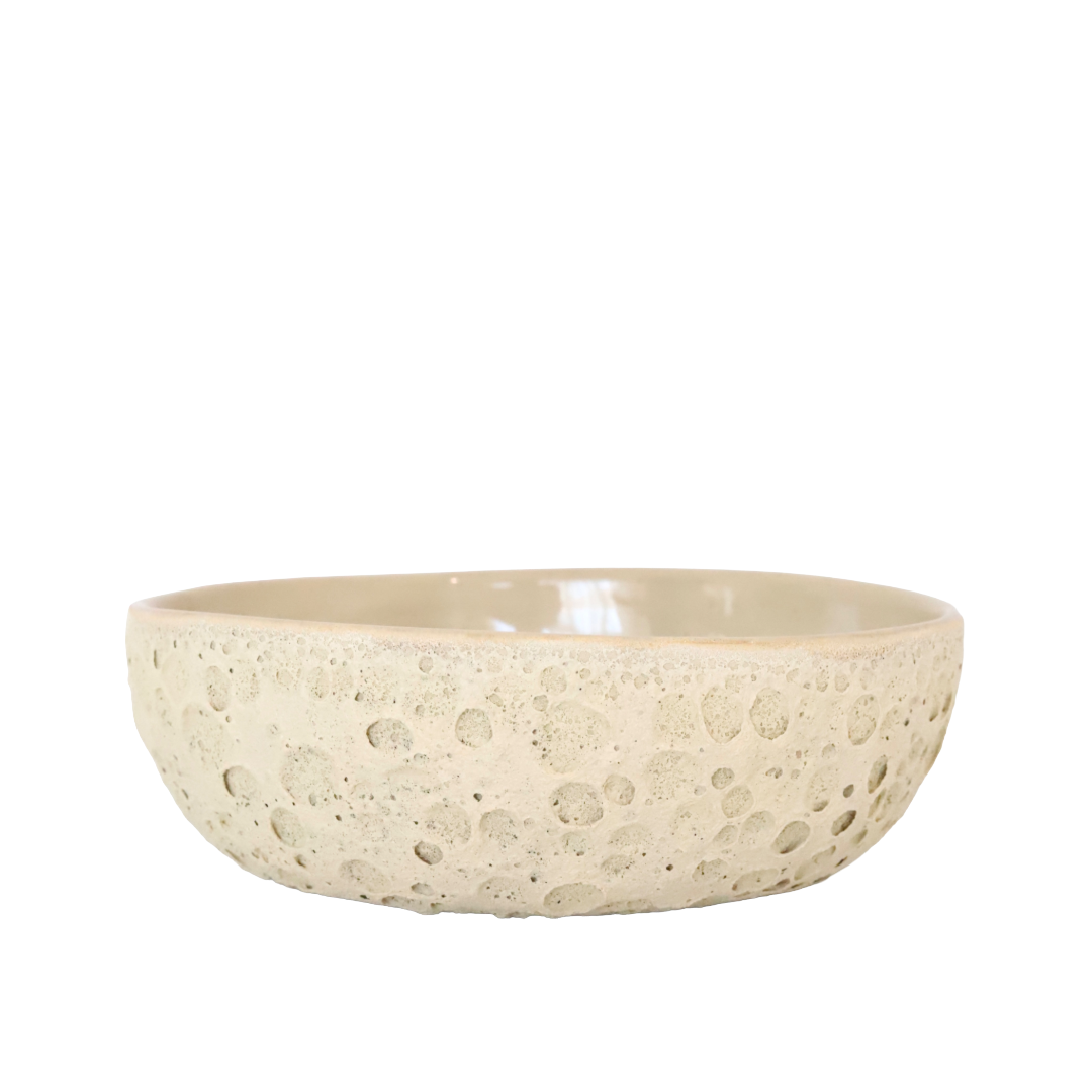 Geniş formu sayesinde salatalardan meyvelere, özel tariflerden günlük kullanıma kadar her sunumu estetik bir deneyime dönüştürür. Sade bej tonlarıyla zamansız bir şıklık sunarken, heykelsi köpük detaylarıyla yalnızca sofrada değil, yaşam alanınızda da dekoratif bir obje olarak güçlü bir duruş sergiler.