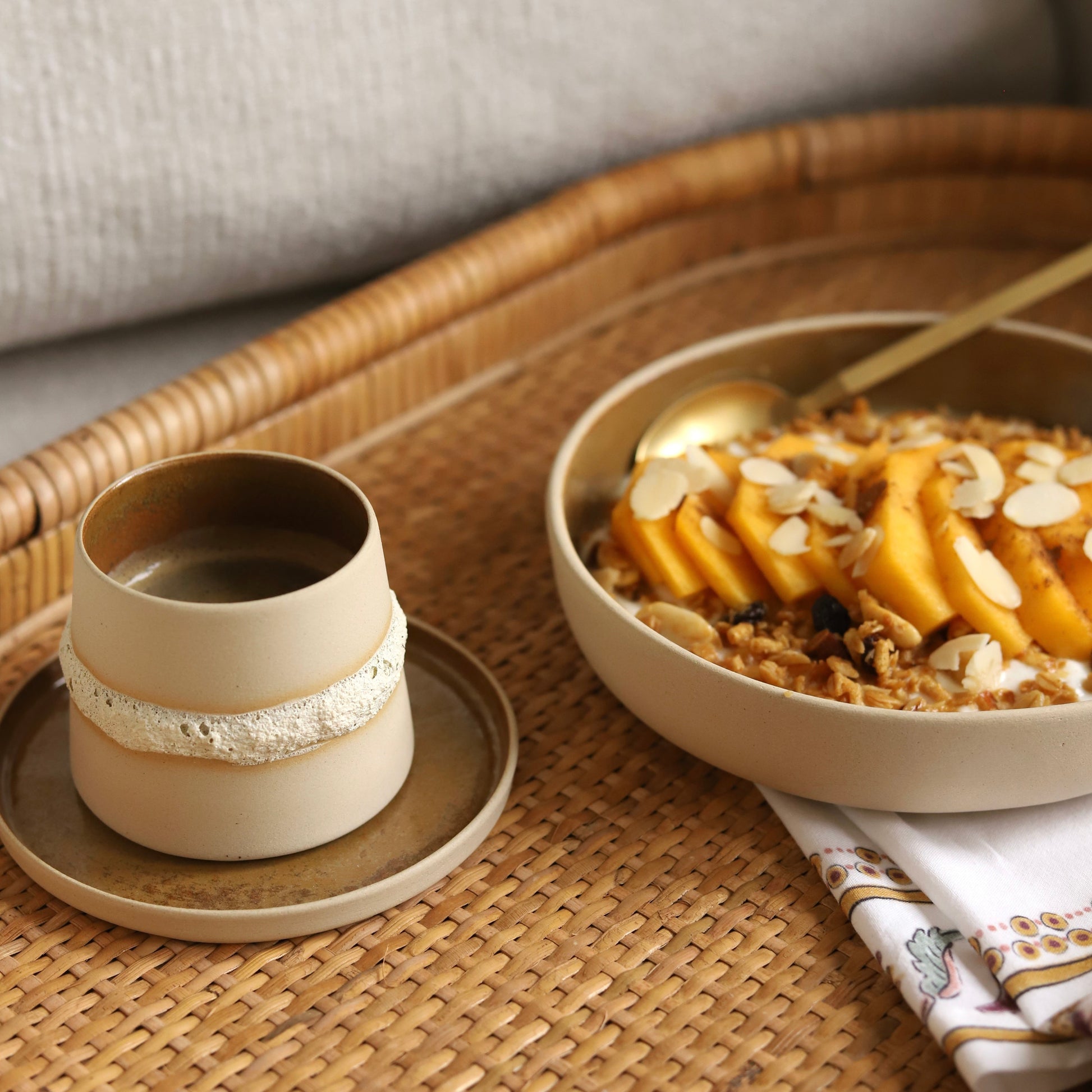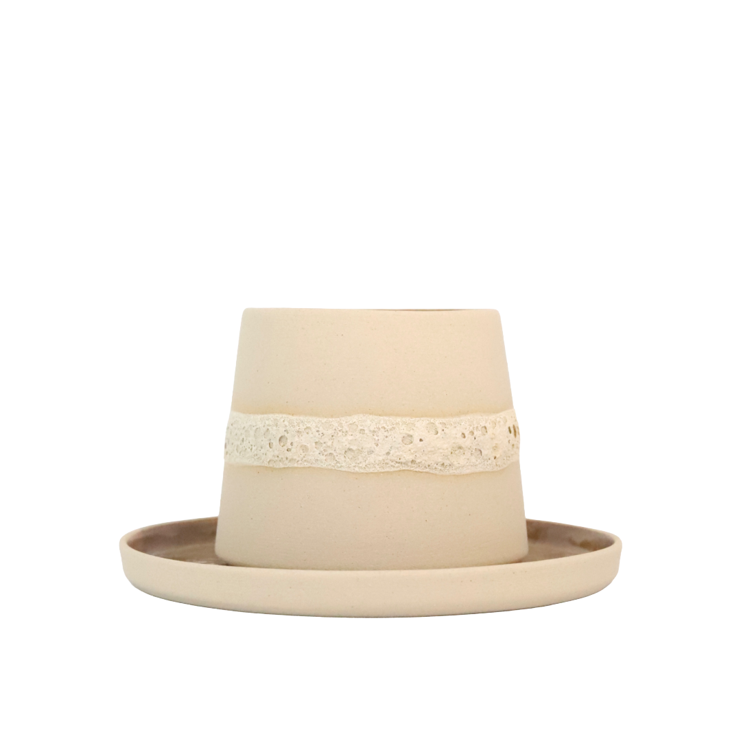 Altlığı ile birlikte tasarlanan bu parça, hem işlevselliği hem de estetiği bir arada sunar. Elde şekillendirilmiş ve özenle hazırlanmış her fincan, tamamen benzersizdir.