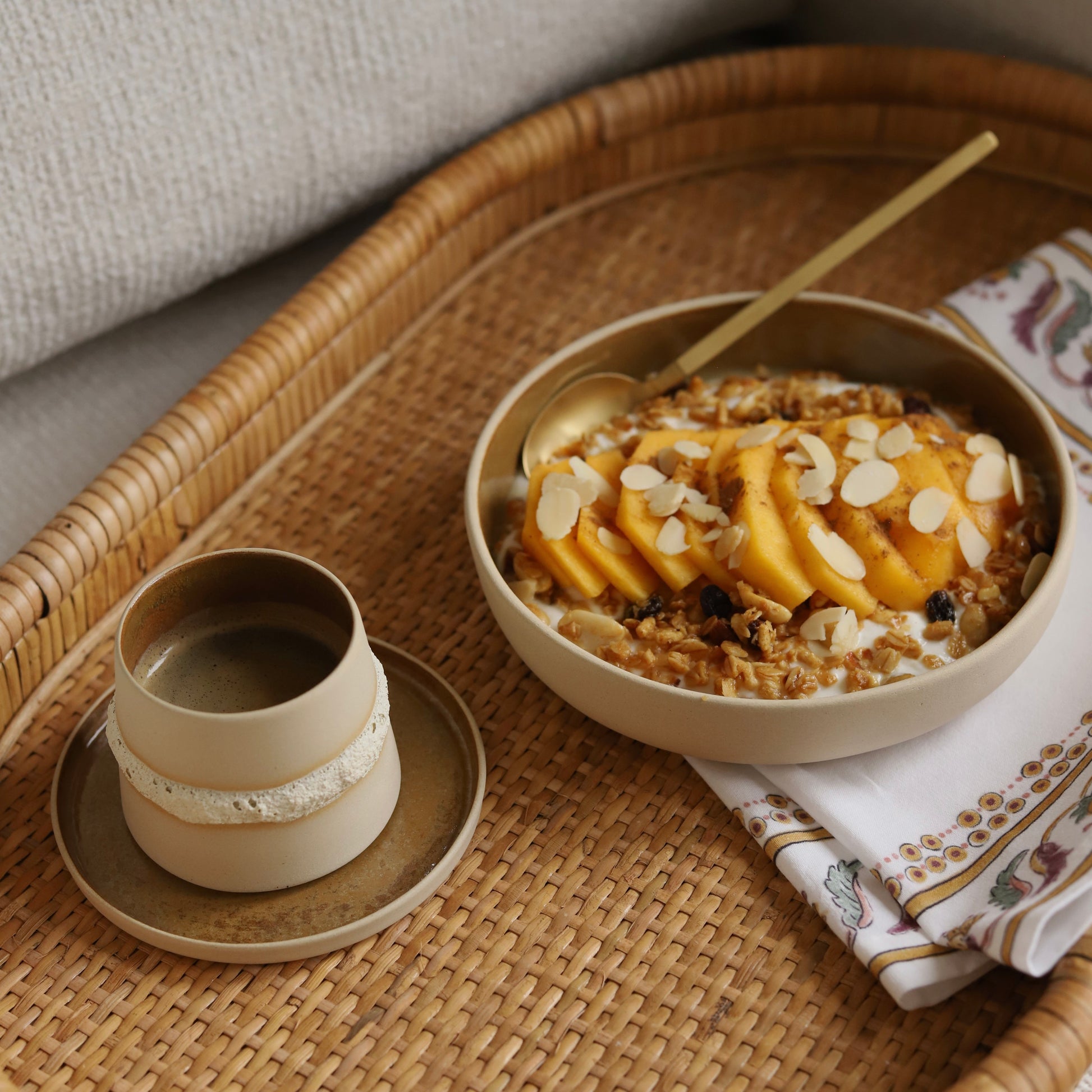 Hera Mandarin Yayvan Kase, turuncu-tarçın tonlarındaki rengiyle güneşin sıcaklığını ve yaşam enerjisini sofralarınıza taşır. Bowl, salata, makarna, meze ya da paylaşım tabakları için ideal formuyla hem günlük kullanımda hem de davet sofralarında öne çıkan özel bir parçadır. El yapımı doğası sayesinde her kase kendine özgüdür ve sofranıza karakter katar.