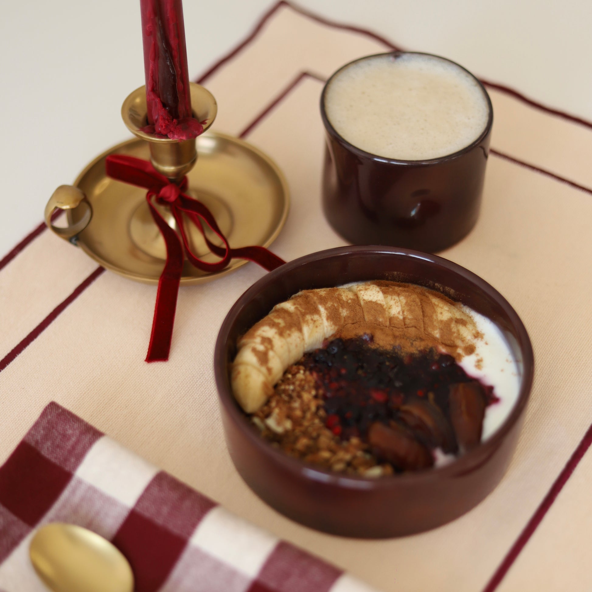 Zengin bordo tonunun derinliğiyle öne çıkan Merlot Mug, dört tarafından elle bastırılarak şekillendirilmiş gövdesiyle elinize tam oturur; hem estetik hem de konforlu bir kullanım hissi sunar.